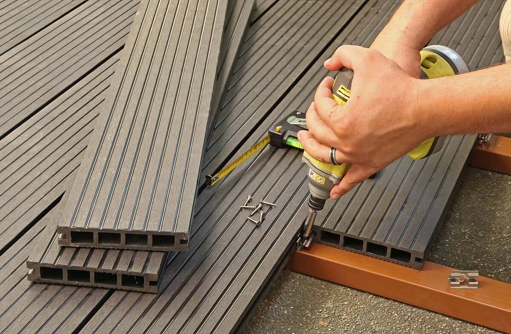 Покрывать капитальный настил следует стойким к гниению декингом (рифлёной доской) из лиственницы или древесно-полимерного композита. Доски крепят к балкам или лагам скрытыми кляммерами, обязательно с зазорами 3–5 мм для стока воды, и обрабатывают террасным маслом (для ДПК выпускаются специальные бесцветные и тонирующие составы под марками Remmers, Black Fox и др.)