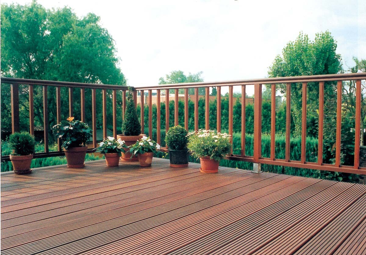 Увы, даже на сухом участке и при условии предварительного антисептирования древесины срок службы такой террасы почти никогда не превышает 10 лет. Дождевая и талая вода со временем проникает вглубь дерева; столбы, балки и доски настила начинают интенсивно гнить, прогибаться и ломаться.