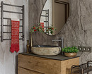 В санузле скомбинировали два вида керамогранита под камень. Это сделало интерьер не скучным.