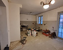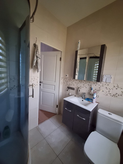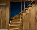 В таунхаусе четыре этажа, и планировку практически не меняли. На цокольном этаже расположена зона отдыха, большая ванная комната и сауна с душевой. На первом этаже — кухня и гостиная. Из кухни — выход на просторную террасу, которую застеклили. На втором этаже — хозяйская спальня и гостевая комната, а также санузел. Третий этаж — мансардный, ранее там была одна изолированная комната и холл-коридор. Сейчас там организовали кабинет, а вместо комнаты хозяин решил сделать гардеробную.