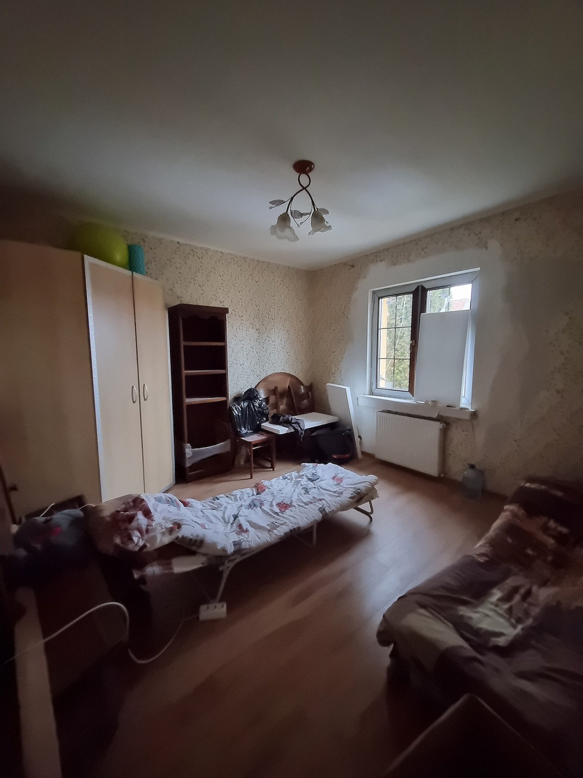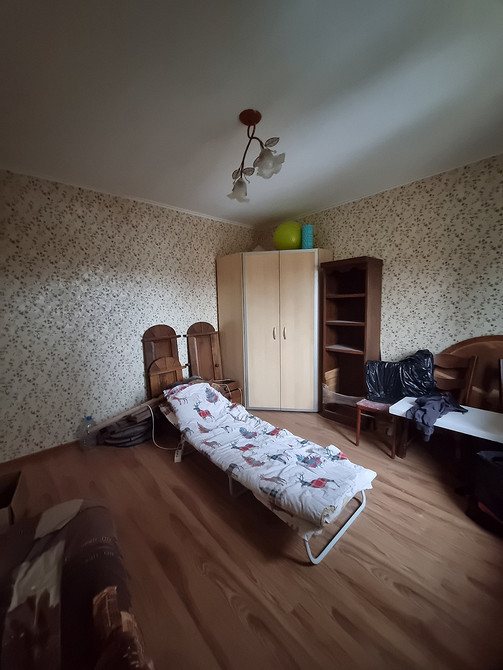 В гостевой комнате поставили раскладной диван, встроили высокий шкаф для одежды, книг.