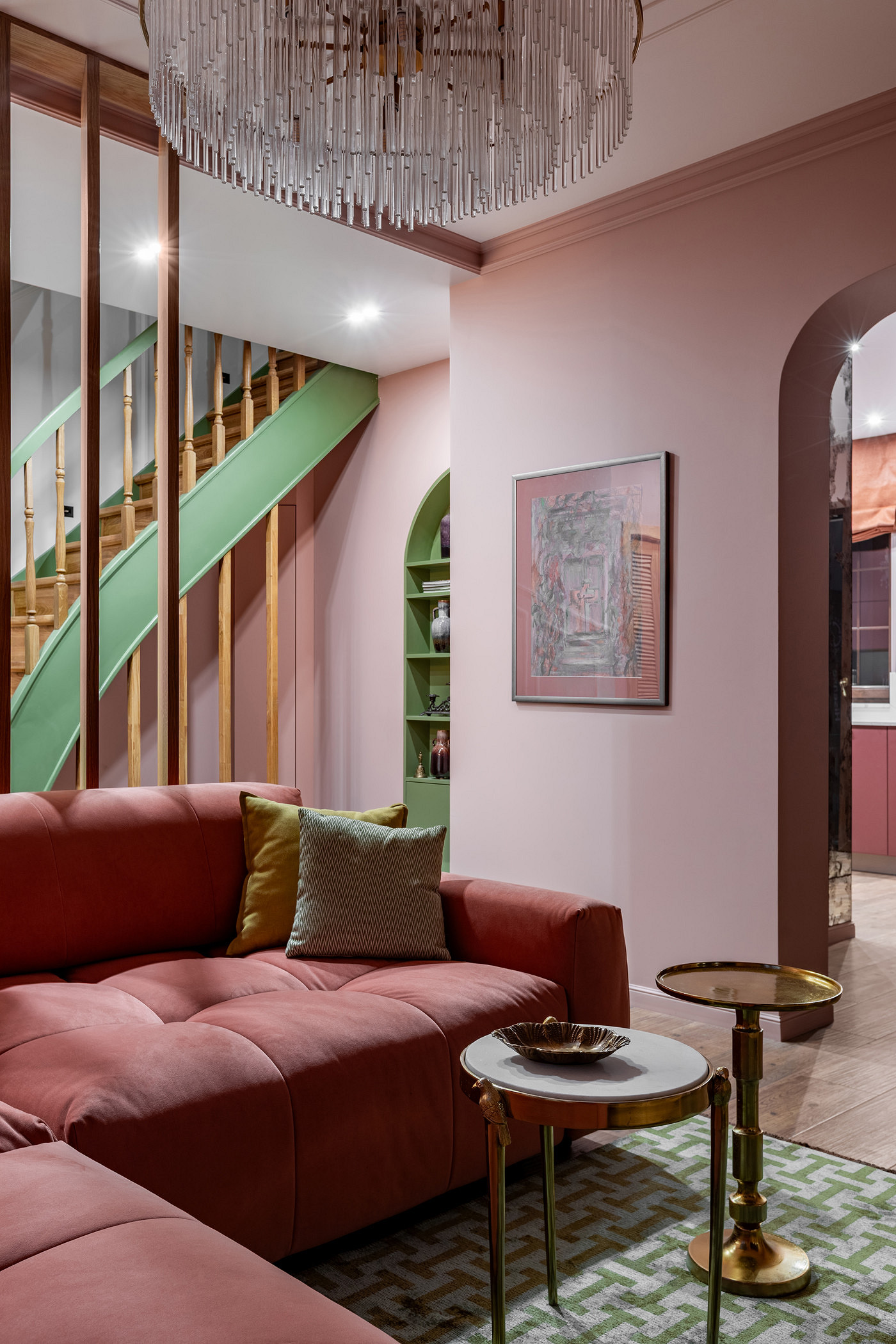 Сценарии освещения разные: дизайнер использовала и точечные потолочные светильники, и люстры, а также подвесные светильники, бра, торшеры и скрытые подсветки — все для того, чтобы создать при желании нужную атмосферу, рабочую или расслабленную.