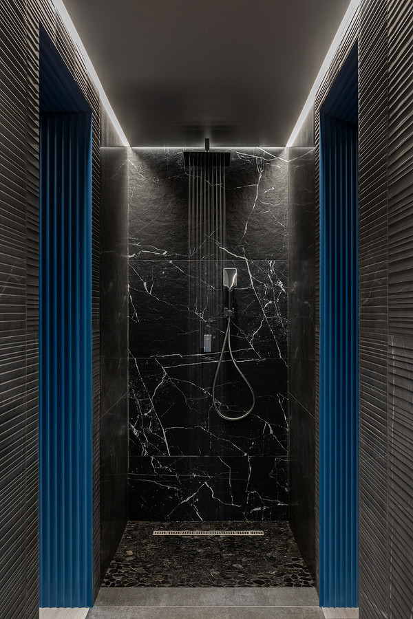 В коридоре между сауной и зоной отдыха — душевая.