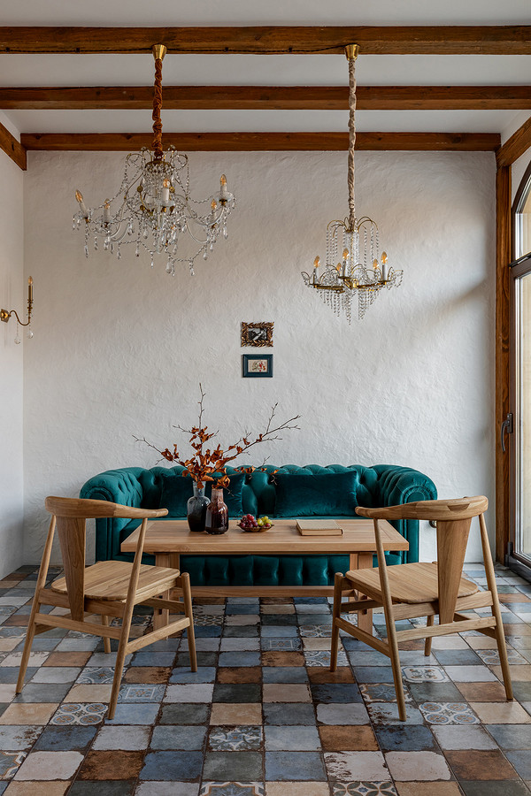 Владелец этого дома — 35-летний мужчина. К дизайнеру Алине Рогут он обратился за нестандартным и творческим проектом. «Клиент любит нестандартные решения, сложные оттенки, состаренные предметы с историей. Необходимо было учесть конструктивные особенности старого фонда, пожелания к реставрации лестницы и предметов мебели. Заказчик увлекается туризмом, стрельбой и чтением книг», — рассказывает дизайнер.