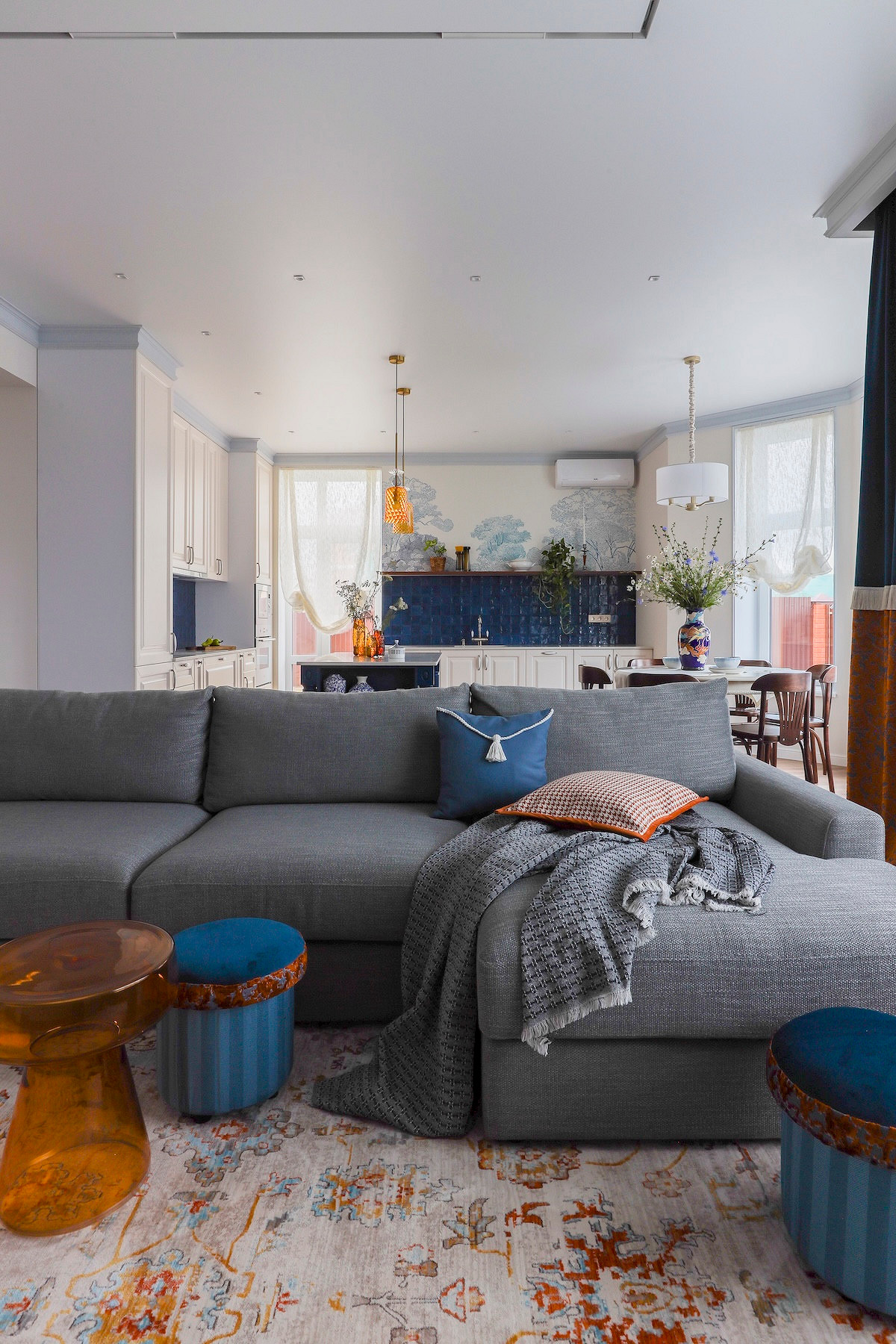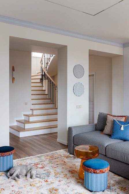 Семья из трех человек построила этот дом самостоятельно, а когда постройка была готова, пригласила дизайнера Лилю Ханову для оформления интерьера с настроением французского стиля прованс. «Важно было наполнить пространство воздухом, светом и ощущением естественной красоты — поэтому здесь много светлых оттенков, натуральных фактур, мягкого текстиля и деликатных цветочных мотивов», — рассказывает автор проекта.