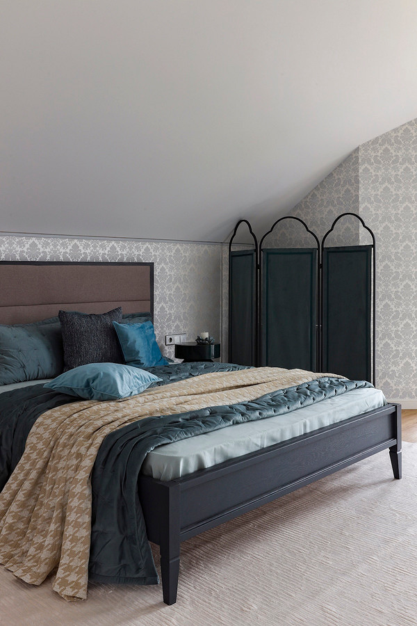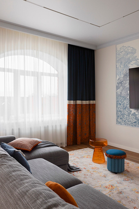 В подборе мебели ориентировались на выбранную стилистику: корпусная изготовлена с фасадами с филенками, намекающими на классическую эстетику, мягкая мебель — современных форм. Из систем хранения: встроенные шкафы в холле, кабинете и отдельно стоящие шкафы с комодами в спальнях.