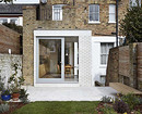 Выделяющуюся подвальную пристройку «Brooksby» создала архитектурная студия Llowarch Llowarch Architects в Лондоне, Великобритания. Яркий белоснежный глазурованный кирпич резко выделяется на фоне главного дома. Такую светлую палитру дополняет внутренняя отделка и мебель из светлого дерева внутри пристройки. Также архитекторы установили широкие окна, чтобы в помещение попадало достаточное количество естественного света.