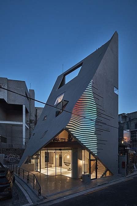 Архитектурная фирма Chiasmus построила здание «Pyramidoid» с интересным фасадом в форме пирамиды и с «лицом» на стене. Заказчики просили архитекторов создать флагманский спа-центр в оживленном районе города и привлечь как можно больше посетителей. Постройка расположена в Сеуле, Южная Корея, сообщает портал Designboom.