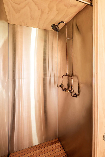 Основной каркас сделан из натурального дерева и скрыт стальными панелями. Интерьер почти полностью выполнен из фанеры, создающей теплую атмосферу в комнатах и гармонирующей с фасадом.