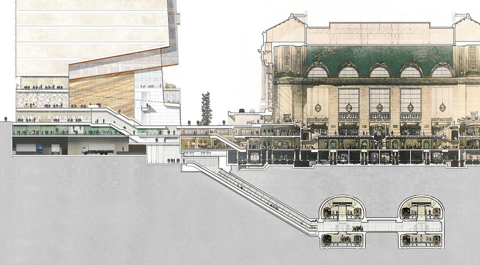 Наверху в будущем появится смотровая площадка, с которой можно будет полюбоваться на виды Нью-Йорка. Из здания можно по подземным переходам спуститься в метро или перейти в здание вокзала. Это позволило улучшить транспортную инфраструктуру города.