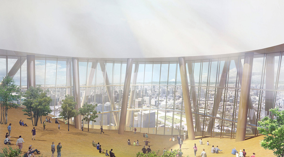 Смотровая площадка в форме короны: архитекторы показали проект небоскреба в Токио