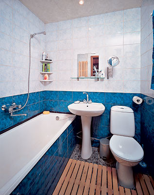 в ванной комнате подвесной, из декоративных пластиковых панелей, которые хорошо защищают от влаги электропроводку, скрытую за ними. Там же, внутри потолка, проходит трасса вентиляции, состоящая