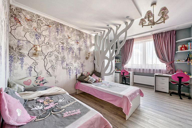 - Стены: фреска Affresco, перегородка резная MDF — на заказ West Russia