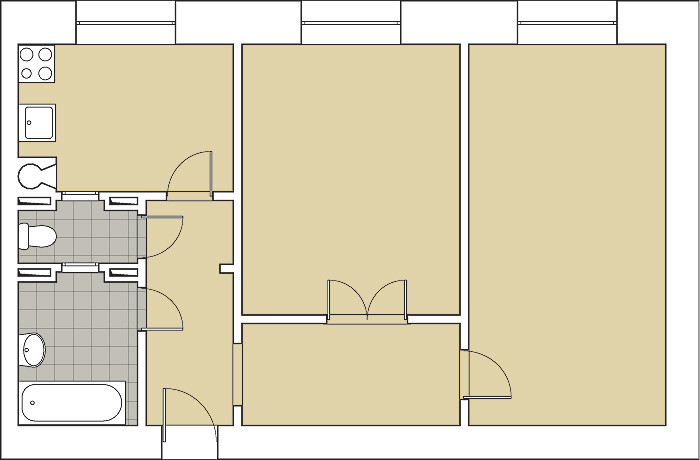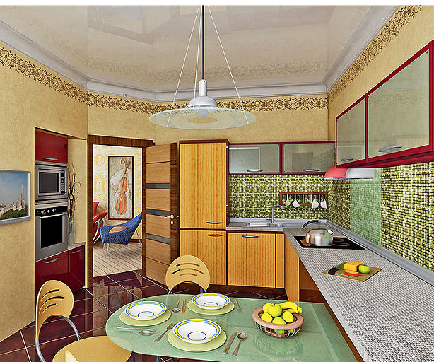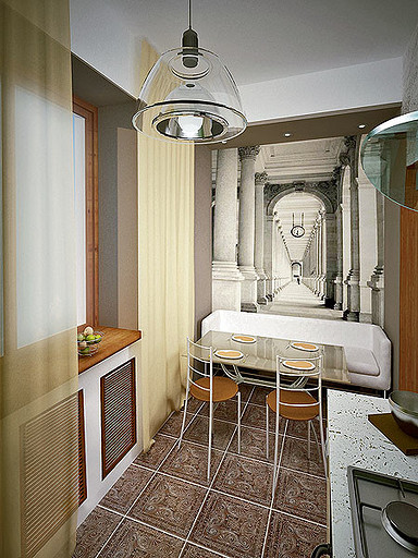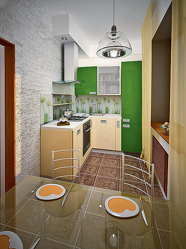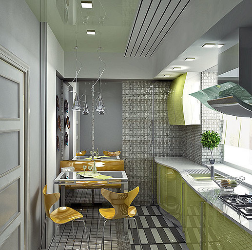 В кухне площадью 10м2 отводят лишь небольшую зону для приготовления пищи с минимальным количеством шкафов- «камбуз»