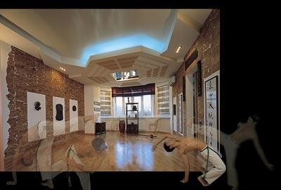 - Потолок: стекло в металлических рамах Тиги Knauf