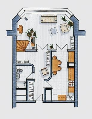 Бывшая мастерская художника площадью 50м2 и высотой 4,9м, переоборудованная в двухуровневую квартиру для семьи из трех человек. Реализованный проект.