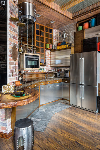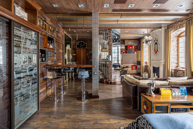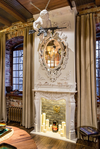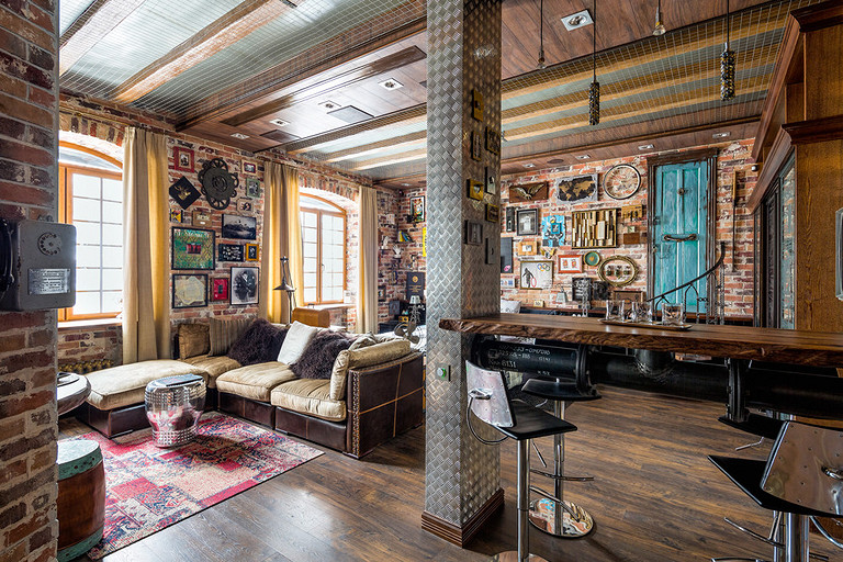 - Стены: плитка под кирпич «Неолит»