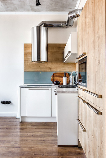 - Бытовая техника: плита Neff, духовка Neff, вытяжка Elica