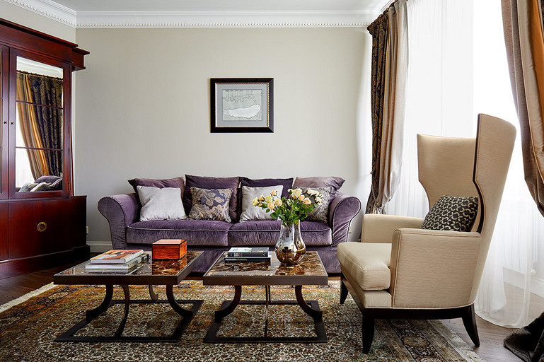 - Мебель: диван, кресло Selva, TВ-тумба и шкаф Baker, столик журнальный BAXTER