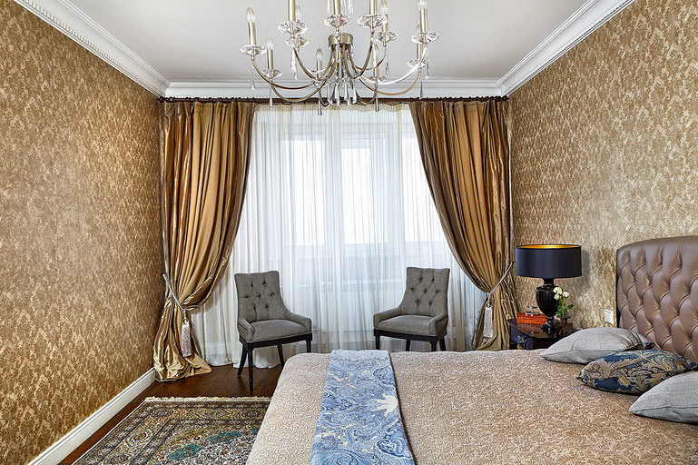 - Мебель: кровать Galimberti Nino, столик прикроватный Galimberti Nino, шкаф — на заказ по чертежам автора проекта Luciano Zonta, кресла Galimberti Nino