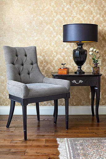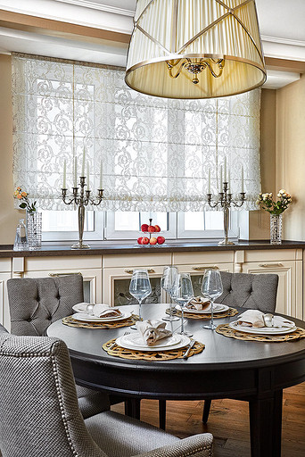 - Аксессуары: шторы Kenzo, шторы J Robert Scott, картина — бумага, тушь, гуашь Василий Лукин