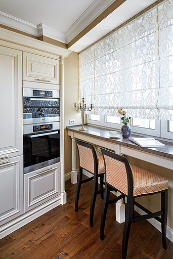 - Мебель: кухня Cesare, подоконник-барная стойка Cesare, стол на заказ Luciano Zonta, стулья барные Luciano Zonta, стулья обеденные Galimberti Nino