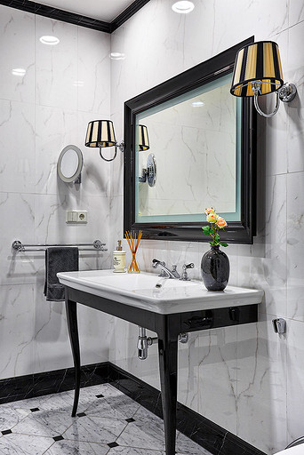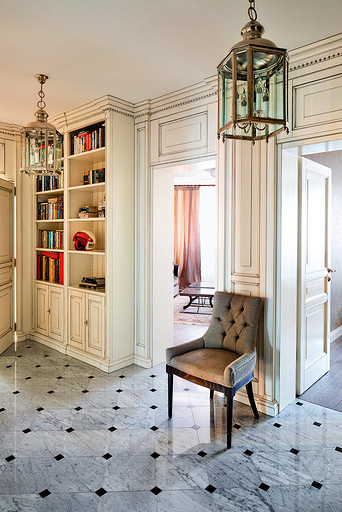 Размышления об оптимальном планировочном решении для этой квартиры заняли у автора проекта немало времени. Зато по завершении ремонта интерьер, оформленный в духе американского ар-деко, стал настолько гармоничным и элегантным, что ни у кого не возникает подозрений о сложностях стартовых условий.