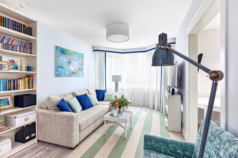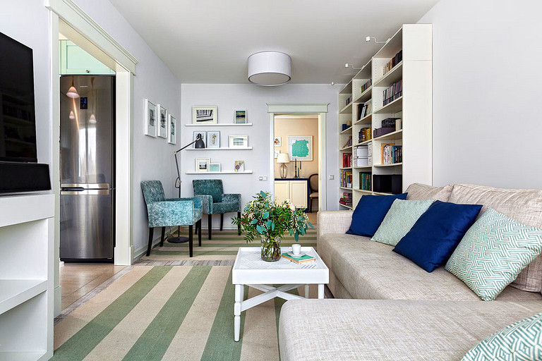 Молодая семья решила сменить густонаселенный спальный район Минска на новостройку в пригороде, на окраине Республиканского ландшафтного заказника. Ощущение природной свежести удалось создать и в интерьерах: прохладная бело-голубая гамма, строгие линии и уютные мизансцены, дизайн в духе скандинавской эстетики как нельзя лучше подходят для отдыха темпераментных владельцев квартиры.