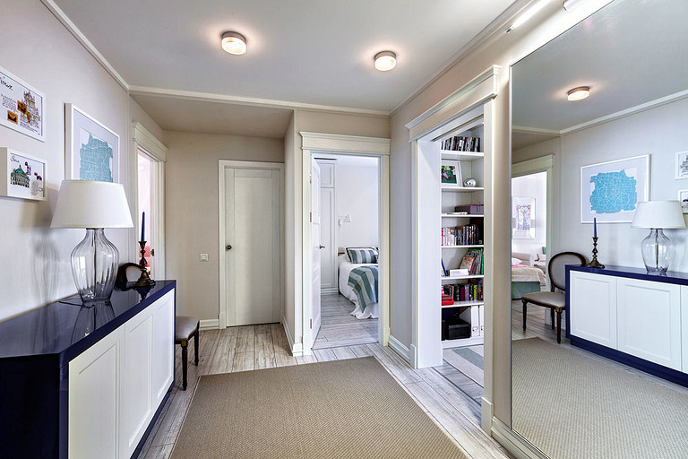 - Мебель: диван «Алвеола и Антонио», кресла «Пинскдрев», стеллажи IKEA, стол журнальный Zara Home, консоль «Вуд-Деко»
