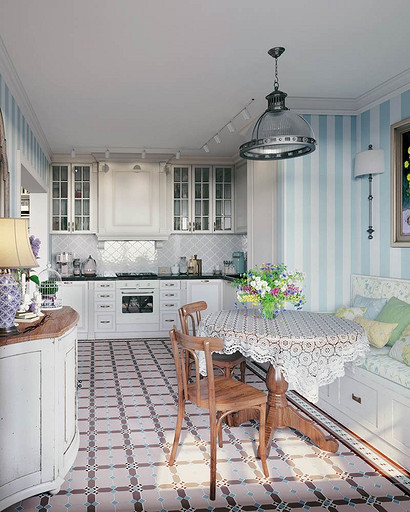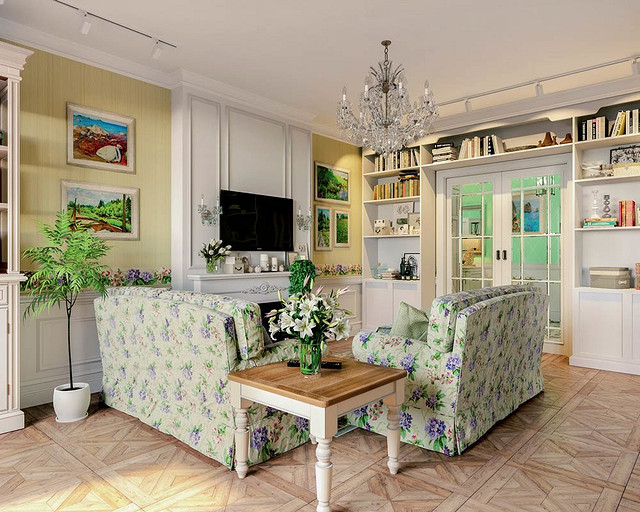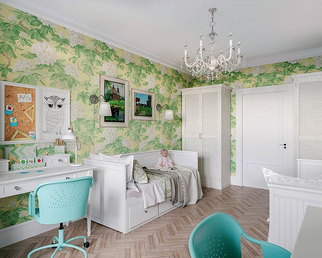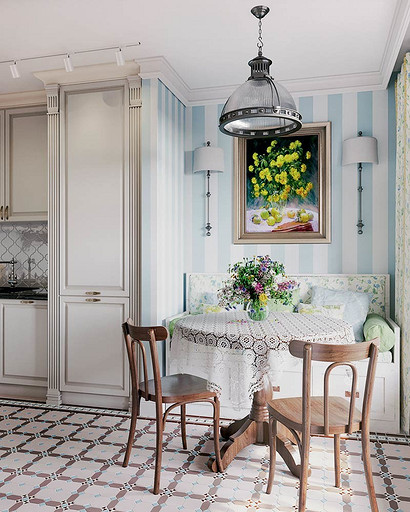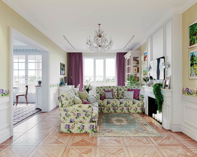 Особенность проекта: квартира для семьи с двумя детьми, решённая в духе французского Прованса, подлежит небольшой, легко согласуемой перепланировке. В интерьере превалируют светлые, пастельные тона и цветочные мотивы, активно используется крашеная мебель классических форм. Эстетичная обстановка поможет привить детям хороший вкус.