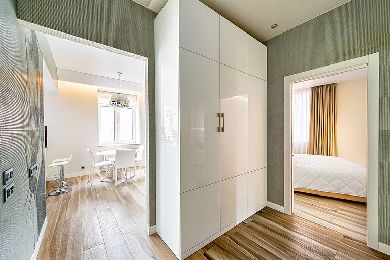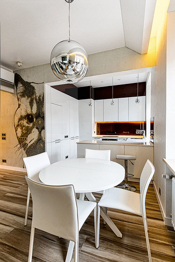 Минималистская концепция современного комфортабельного и лаконичного мужского жилища была реализована необычными способами, что в числе прочего позволило реализовать главную декоративную задачу: визуально увеличить размеры небольшой квартиры.