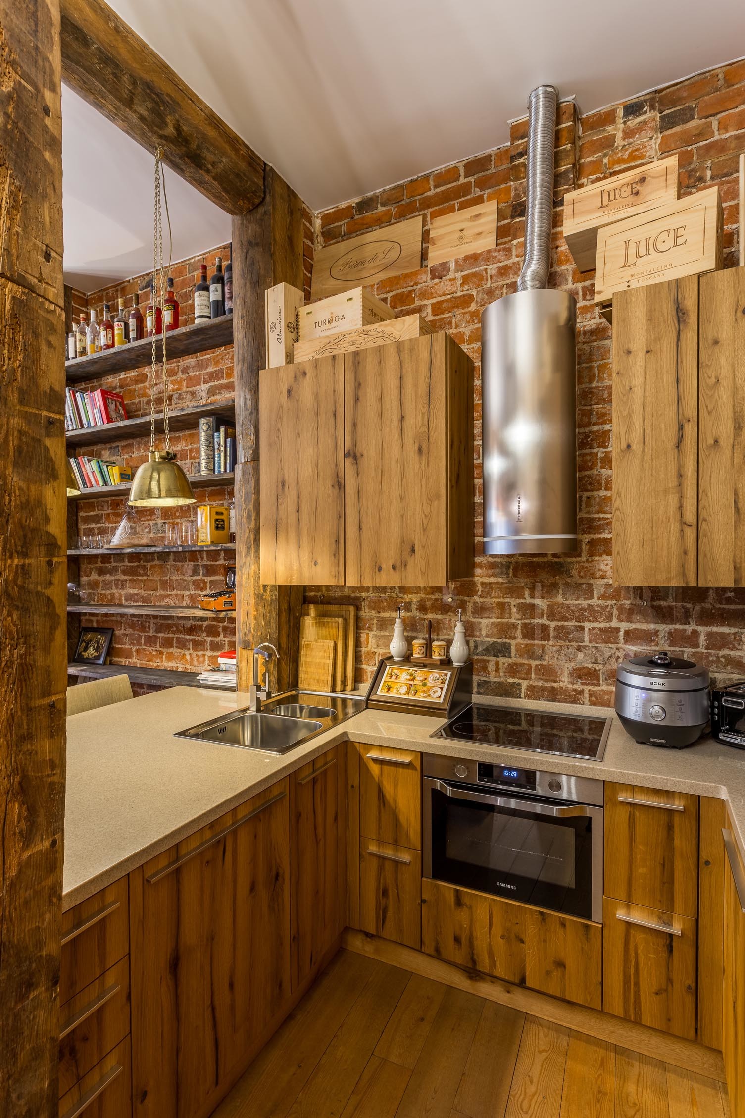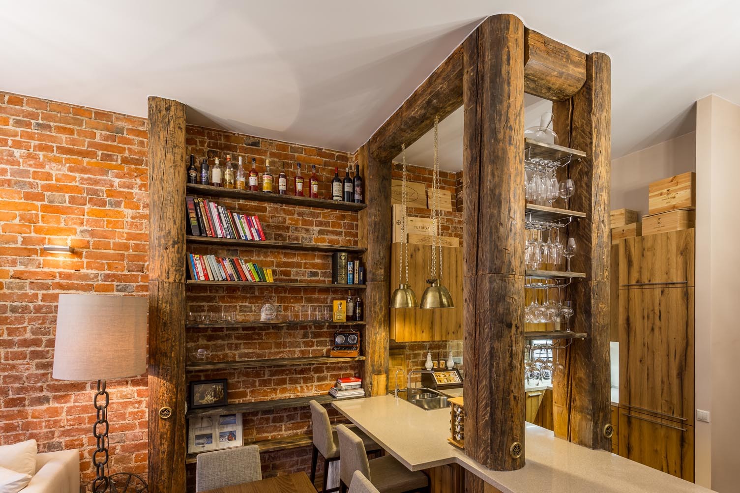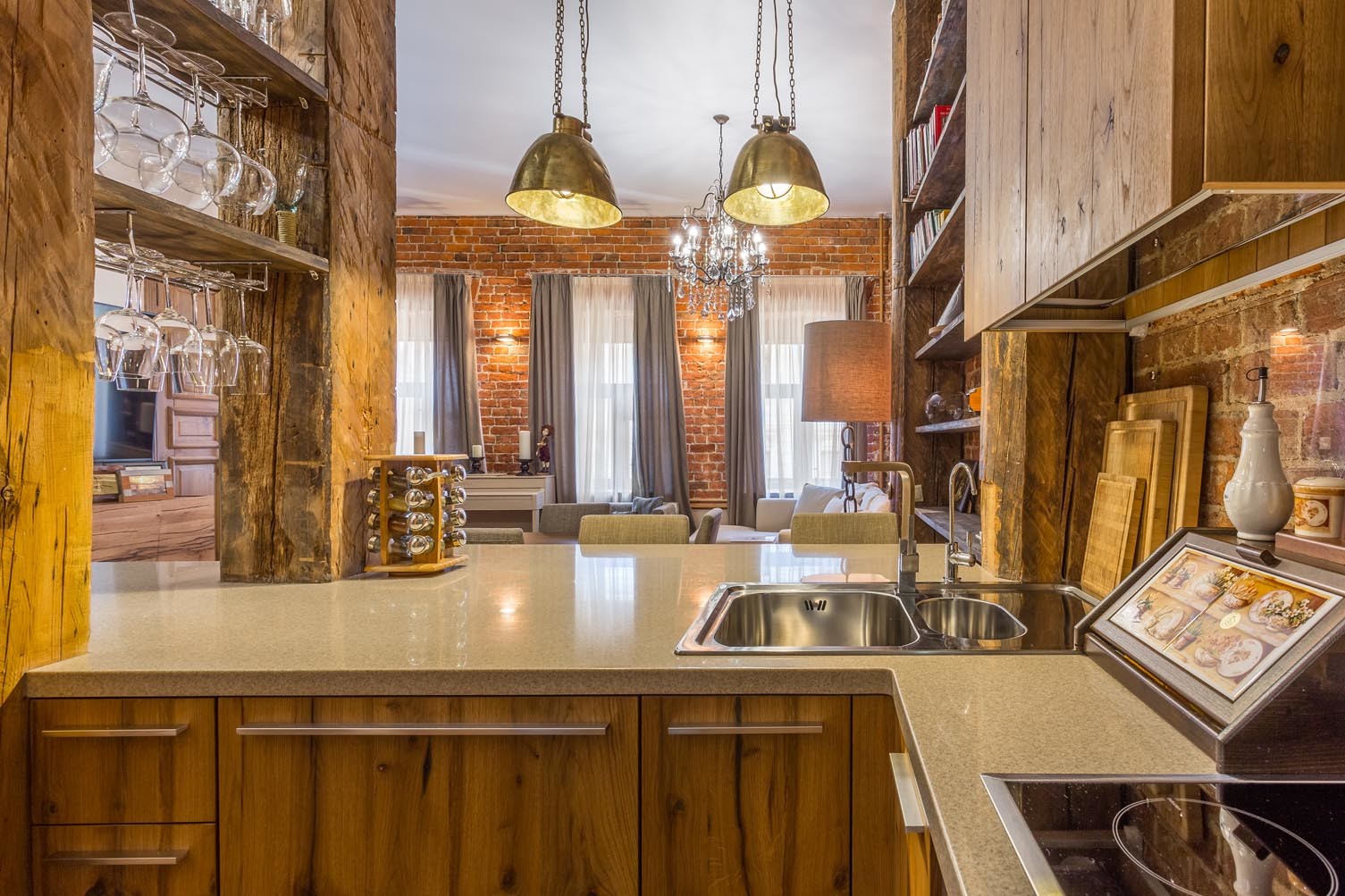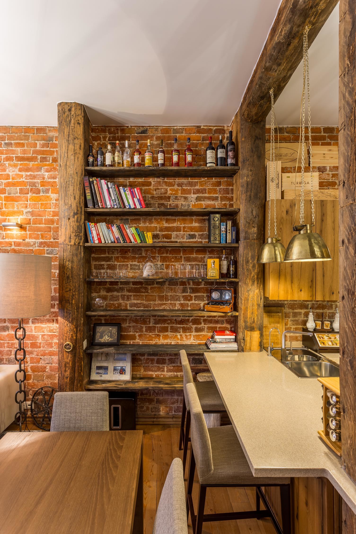 Старый дом с кирпичными стенами, высокими окнами и потолками — настоящая находка для тех, кто ценит красоту природных материалов и эстетику лофта.
