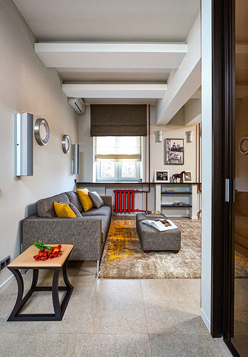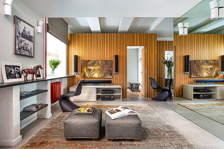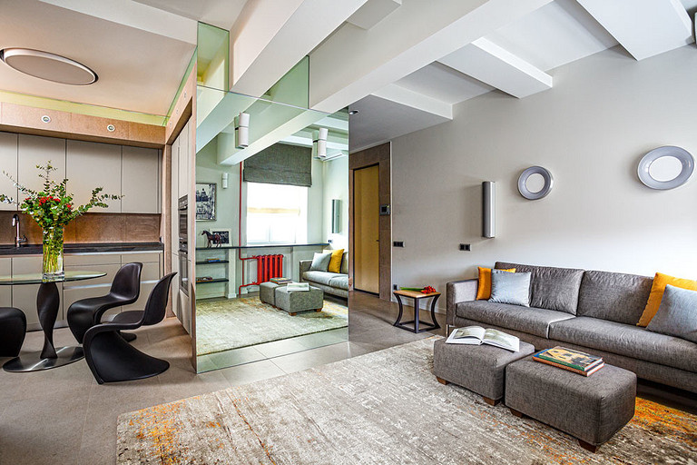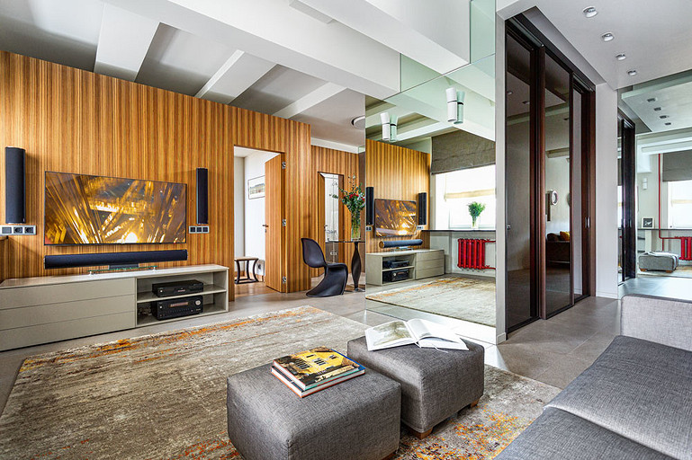 Благодаря перепланировке и оригинальным дизайнерским приемам интерьер пришелся по душе всем поколениям семьи заказчиков. Ведь в результате работы архитектора обычная двухкомнатная квартира в столичной «сталинке» преобразилась в современное жилье, в котором рачительно использован каждый сантиметр.