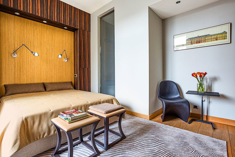 - Аксессуары: ковер Kover Buro, шторы и покрывало Arch-Hall