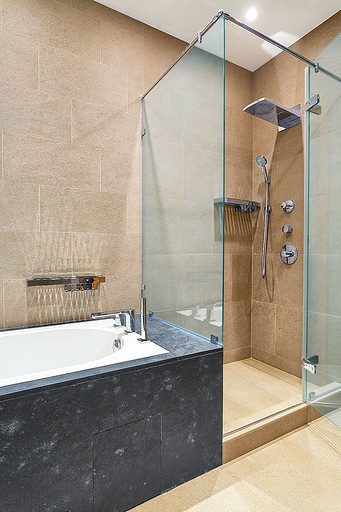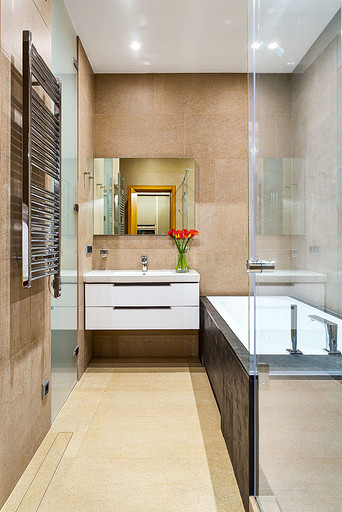 - Сантехника: унитаз, биде Villeroy & Boch, ванна Oberon, смесители Dornbracht, душевая лейка HG Raindance Rainfall