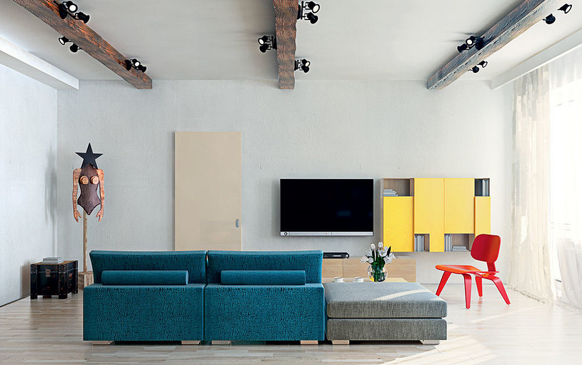 Благодаря существенным изменениям в планировке, квартира преобразована в просторную студию с отдельной спальней американского типа.
