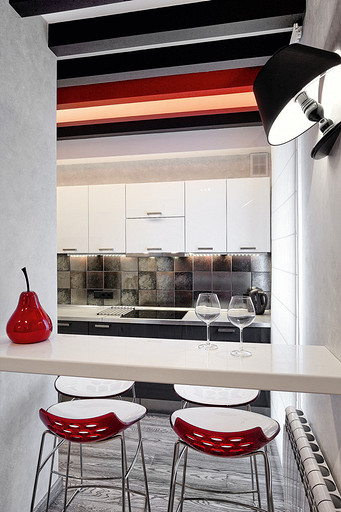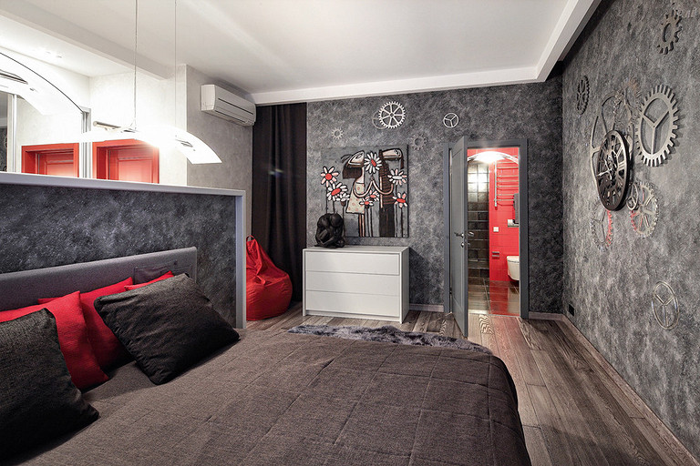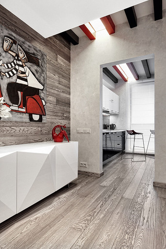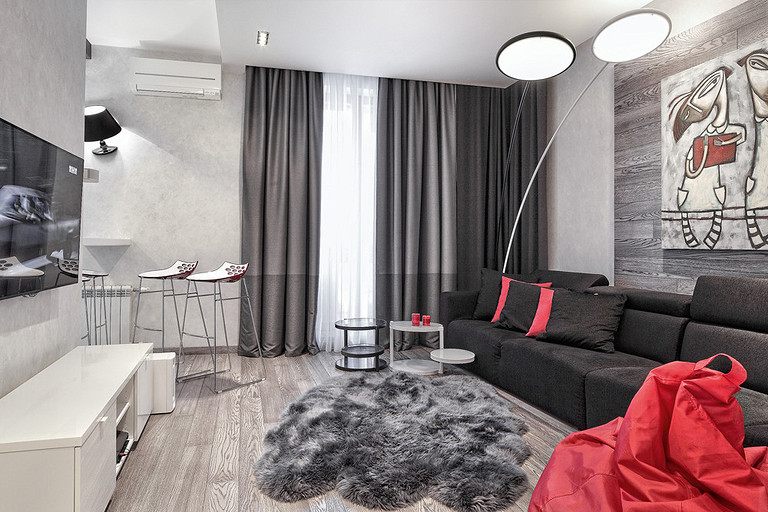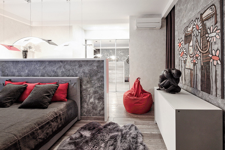 Квартира для студента: интерьер в серо-белых тонах с яркими акцентами