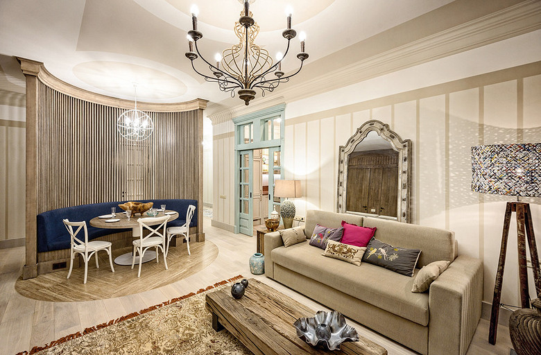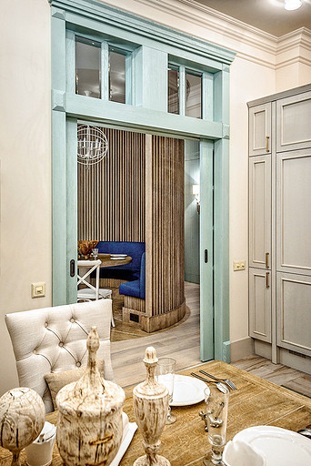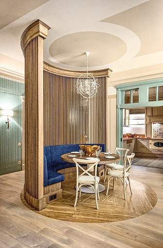 Природные оттенки в дизайне этой квартиры вкупе с классическими деталями создают уникальный интерьер, в котором античность как будто соединилась с современностью.
