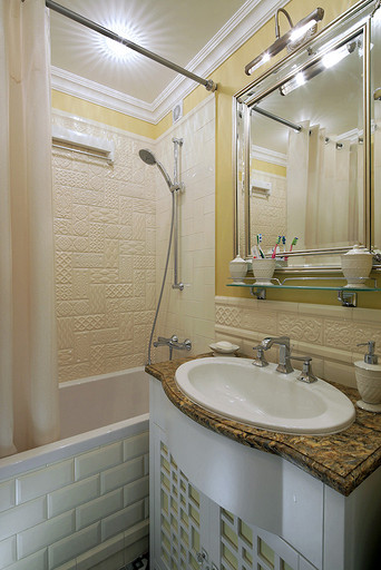 - Пол: керамическая плитка Boulevard Viva Ceramica, керамическая плитка Fango Horus Art Ceramiche, паркетная доска Topwood Switzerland Ascona