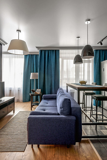 В этой небольшой комфортабельной квартире есть ощущение свободного пространства. Находясь здесь, меньше всего думаешь о том, что это однушка площадью 44 м². Это современное жильё, идеально соответствующее запросам своей хозяйки.