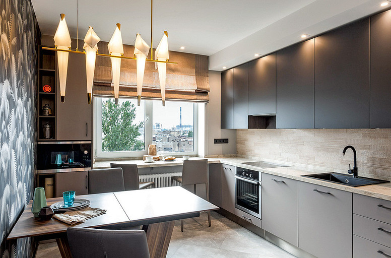 - Мебель: кухня K&Mdesign, стол обеденный — дерево, стулья Pranzo