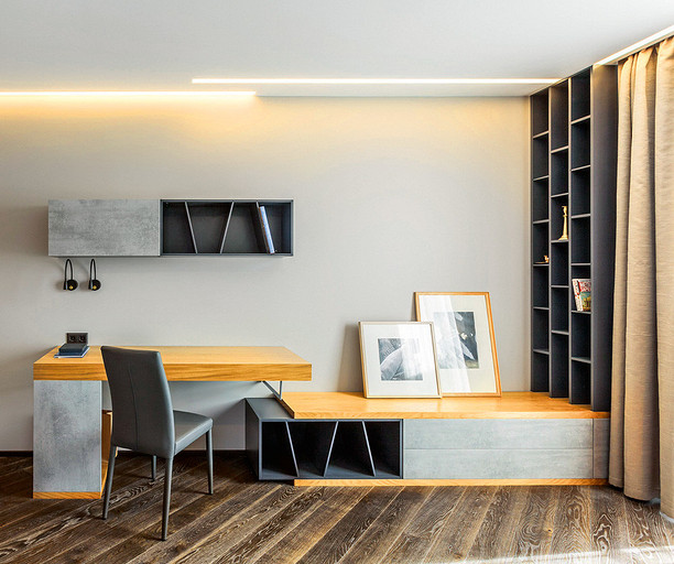 - Мебель: кровать Bonaldo, диван Svenska Möbler, стол, комод, стеллаж K&Mdesign