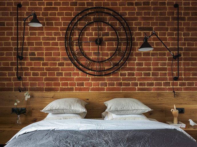 - Мебель: изголовье кровати и подвесные тумбочки, полка «Твой Цех», кровать Dream Land