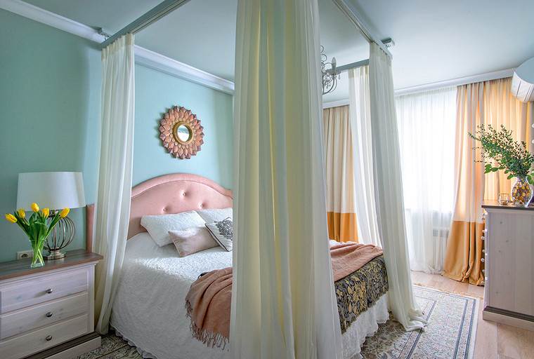 - Аксессуары: текстиль «Люксшторы», покрывало Zara Home, зеркало Artefacto