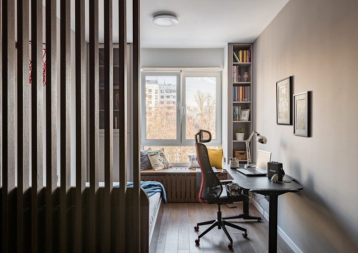 Дизайнер спроектировала удобный интерьер для двоих, где больше места отвела под детскую, и уделила много внимания системам хранения. Читать далее...