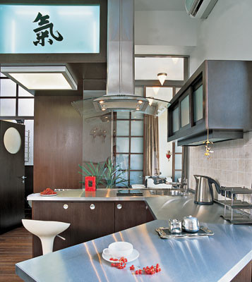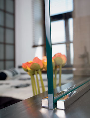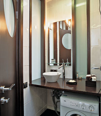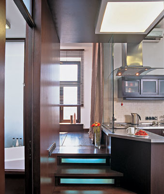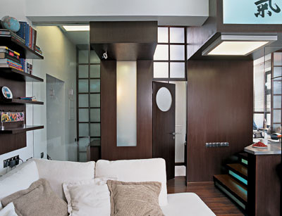 - Стены: за диваном — облицовка деревянными панелями (шпон венге), краска Beckers