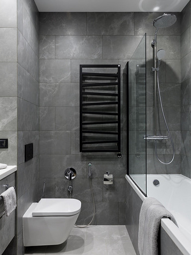 - Сантехника: ванна AM.PM, душевая стойка и термостат Hansgrohe