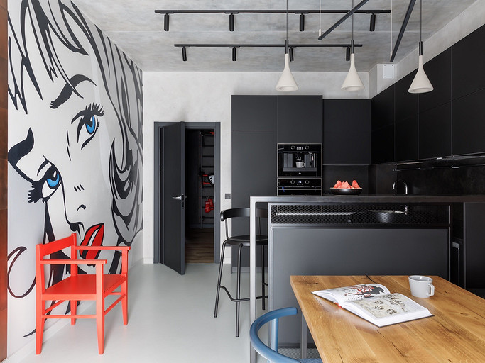 Дизайнер спроектировал практичный интерьер, в котором приватная зона хозяина отделяется от общей, где он мог бы устраивать вечеринки и приглашать гостей. Интерьер построен на сочетании черного цвета, ярких акцентов и фактурных материалов.                                     Читать далее...