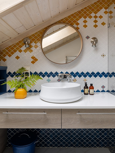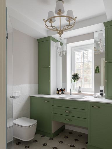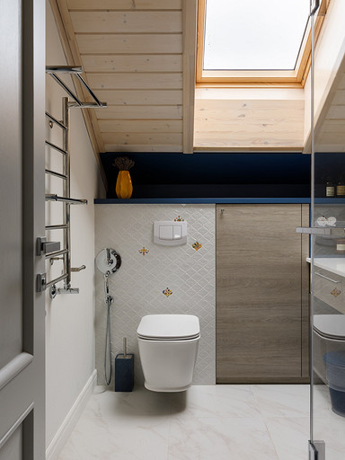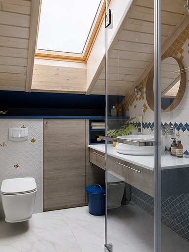 - Стены: обои под покраску, краска Derufa, лессирующая пропитка на водной основе, плитка Kerama Marazzi