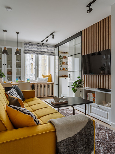 На площади 57 метров дизайнерам удалось спроектировать функциональное пространство для молодой семьи с ребенком, задействуя конструктивные особенности квартиры и планировки. При этом авторы проекта не отказались от ярких цветов. Читать далее...